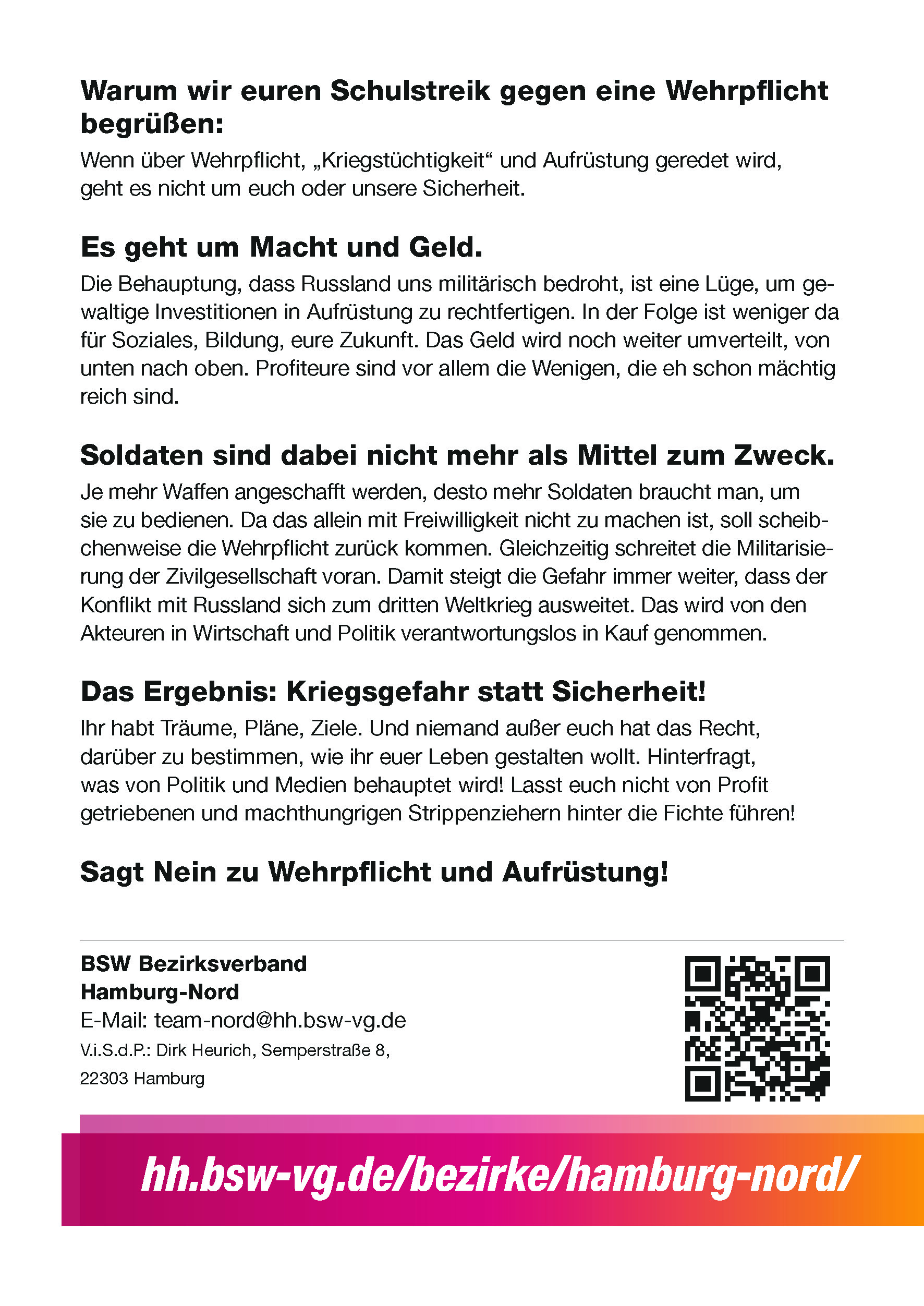BSW Hamburg-Nord beim Schulstreik gegen die Wehrpflicht